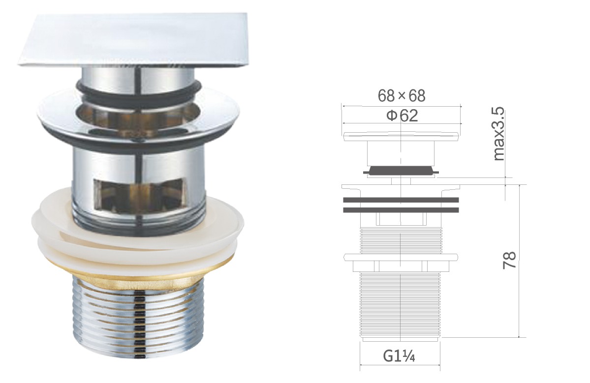 Stainless steel water for wash basin 1 1/4" clic-clac
