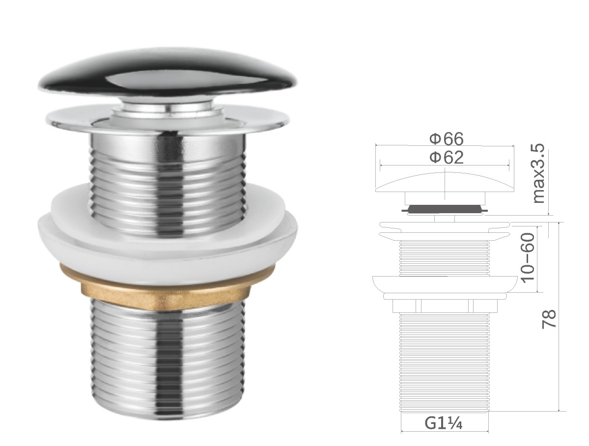 Stainless steel water for wash basin 1 1/4" clic-clac