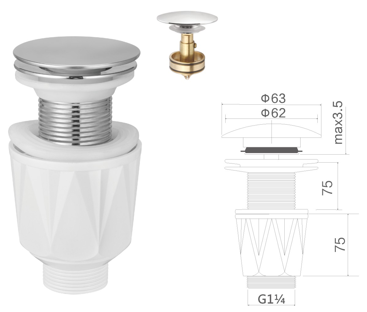 Stainless steel water for wash basin 1 1/4" clic-clac