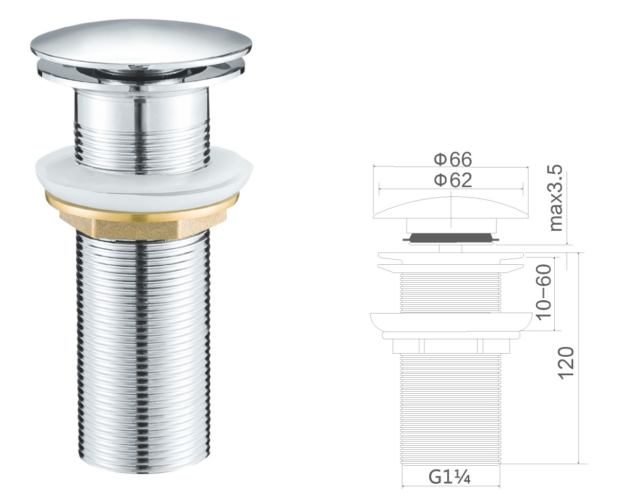 Stainless steel water for wash basin 1 1/4" clic-clac