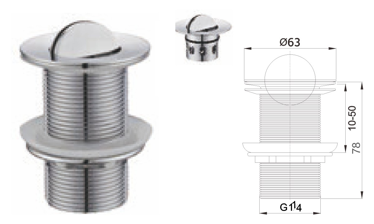 Brass water for public wash basin 1 1/4" fixed cover not clic-clac