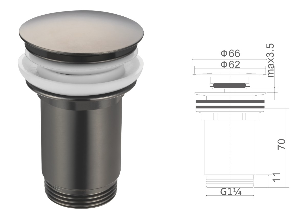 Stainless steel water for wash basin 1 1/4" clic-clac