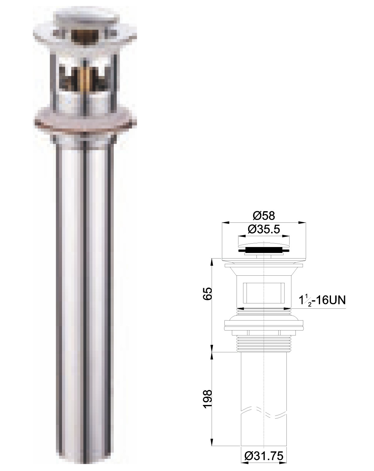Stainless steel water for wash basin 1 1/4" clic-clac