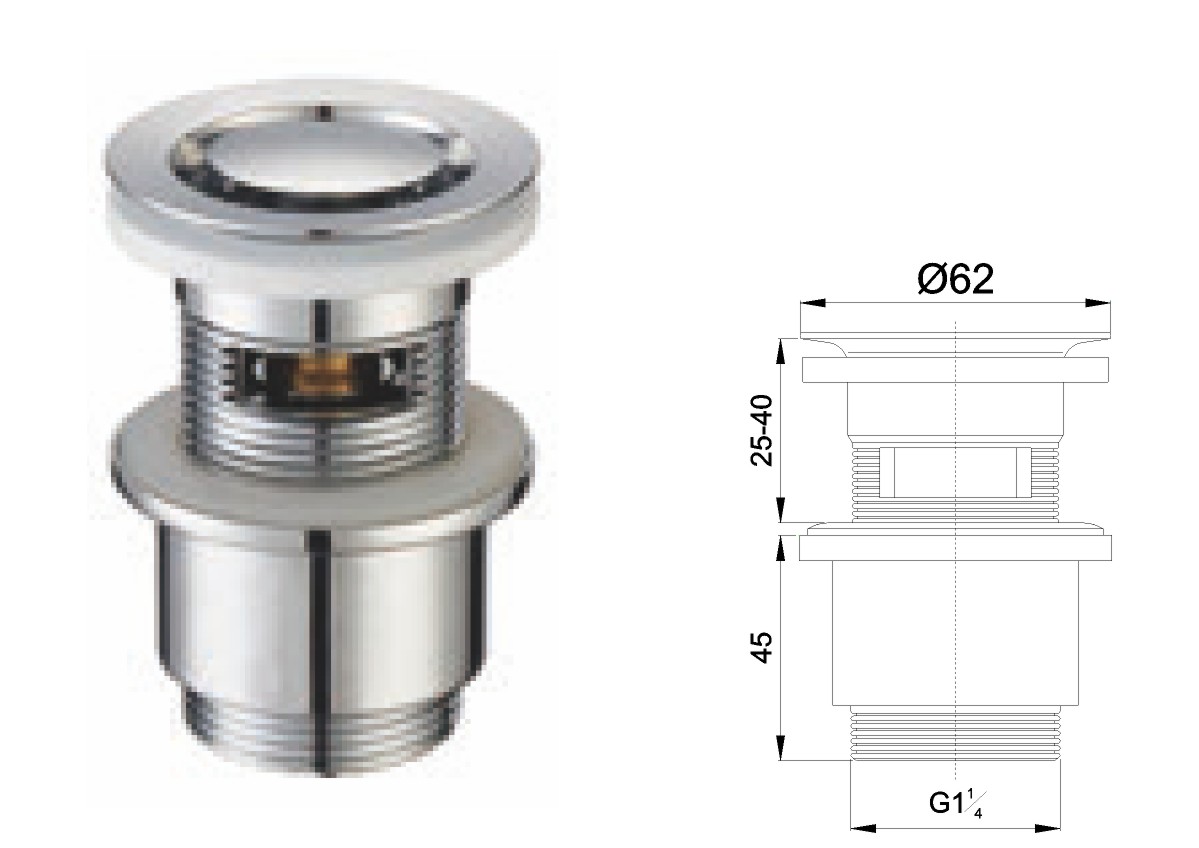 Stainless steel water for wash basin 1 1/4" clic-clac
