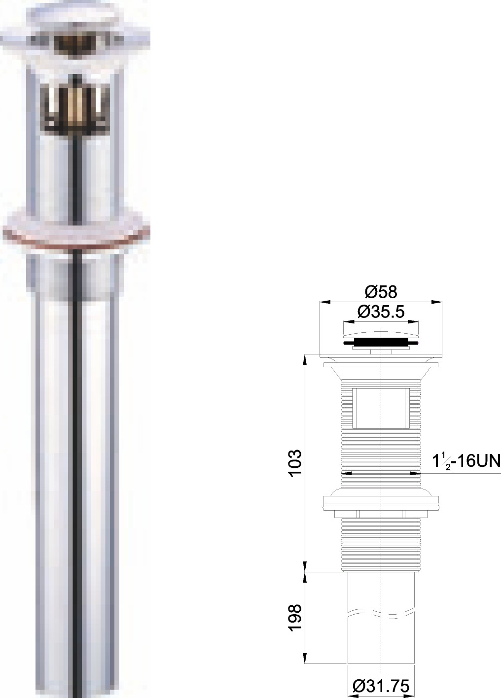 Stainless steel water for wash basin 1 1/4" clic-clac