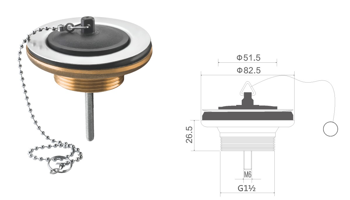Stainless steel water for wash basin 1 1/4" clic-clac