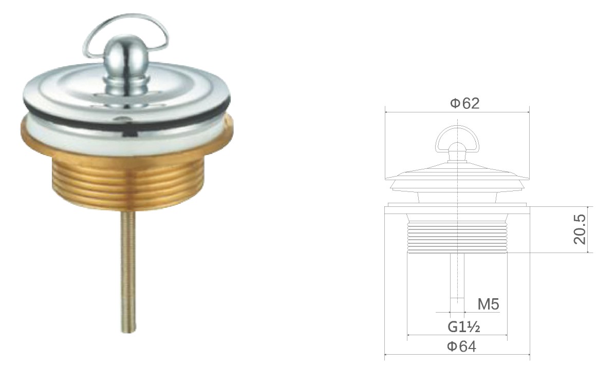 Stainless steel water for wash basin 1 1/4" clic-clac