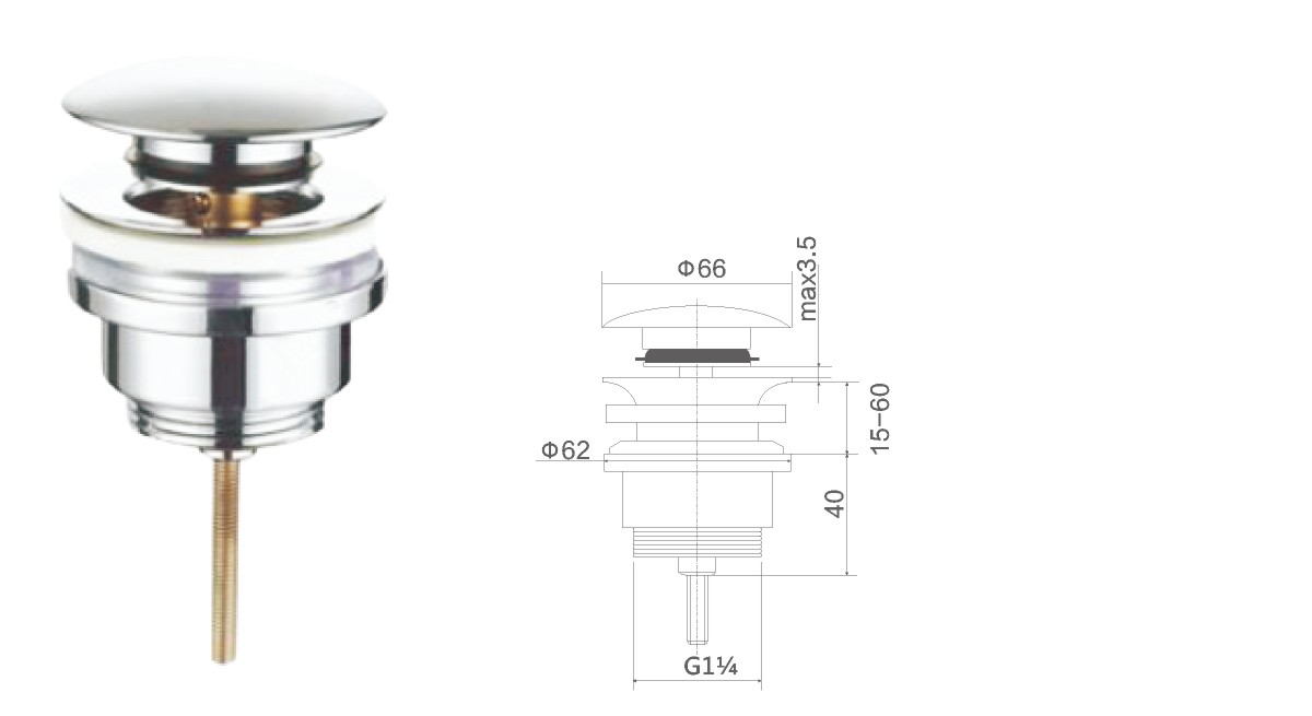Stainless steel water for wash basin 1 1/4" clic-clac