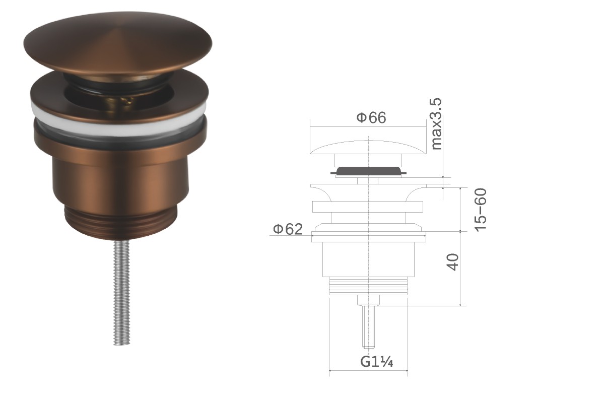 Brass waste for wash basin 1 1/4" clic-clac