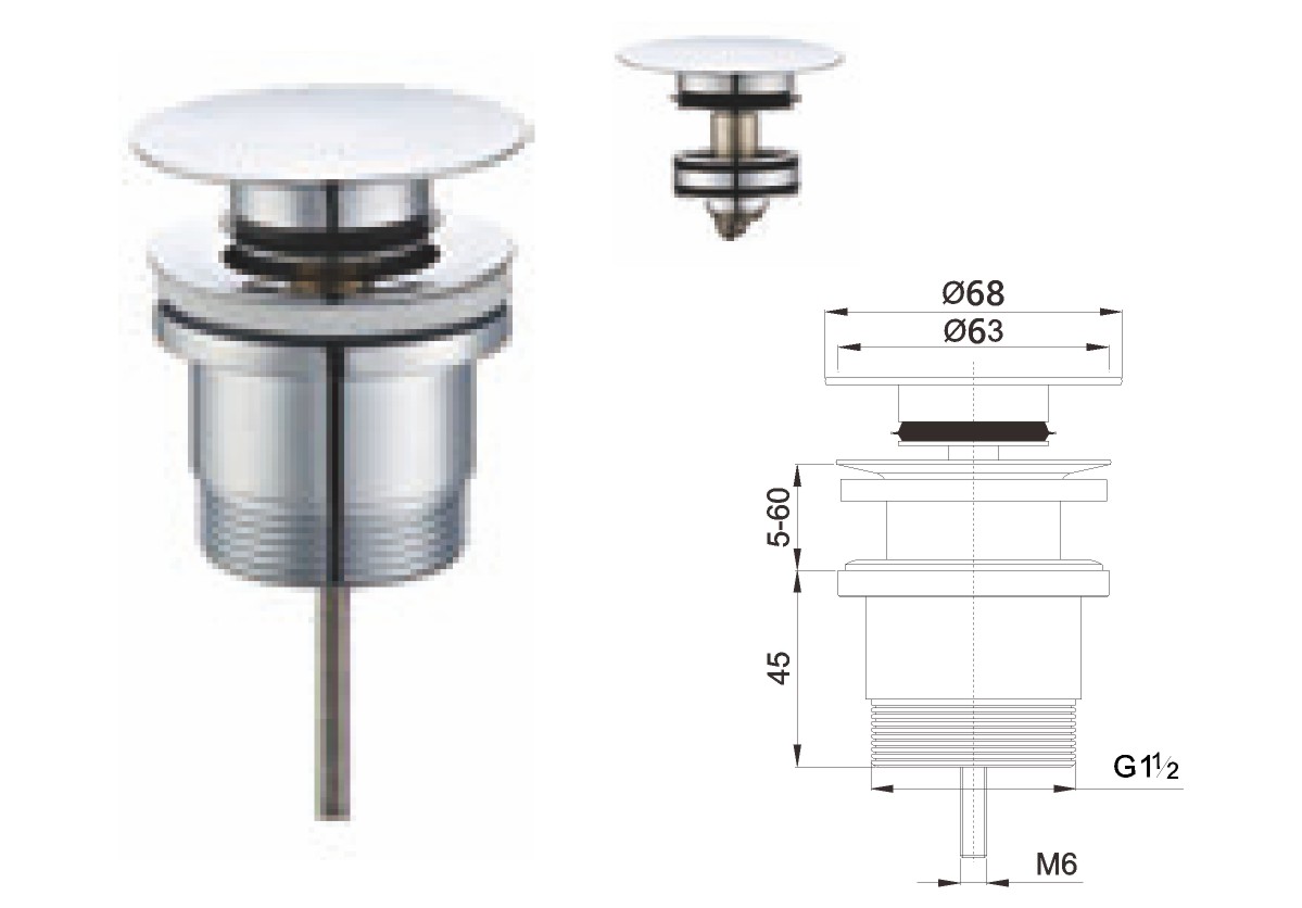 Stainless steel water for wash basin 1 1/4" clic-clac