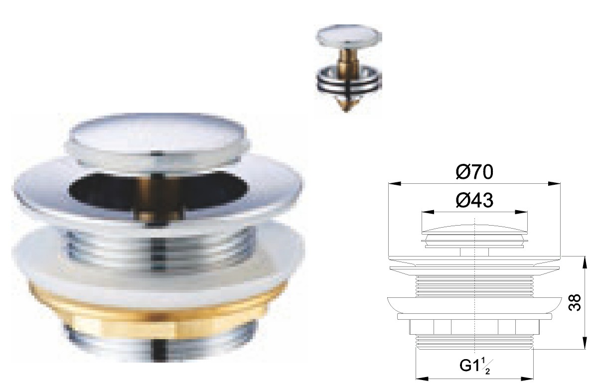 Brass water for bathtub 1 1/2",clic-clac