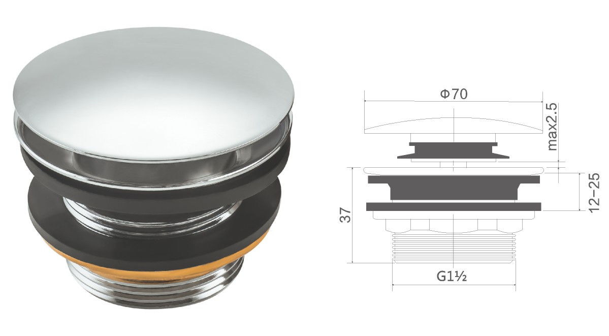 Brass waste for wash basin 1 1/4" clic-clac