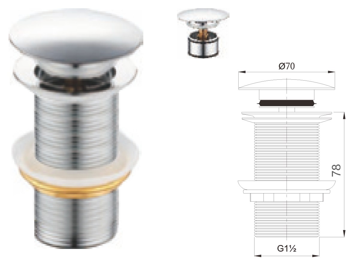 Brass waste for wash basin 1 1/4" clic-clac