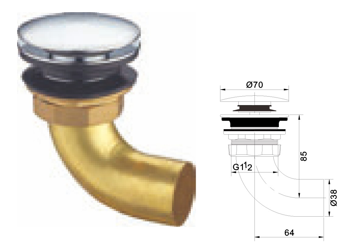 Brass water for public wash basin 1 1/4" fixed cover not clic-clac