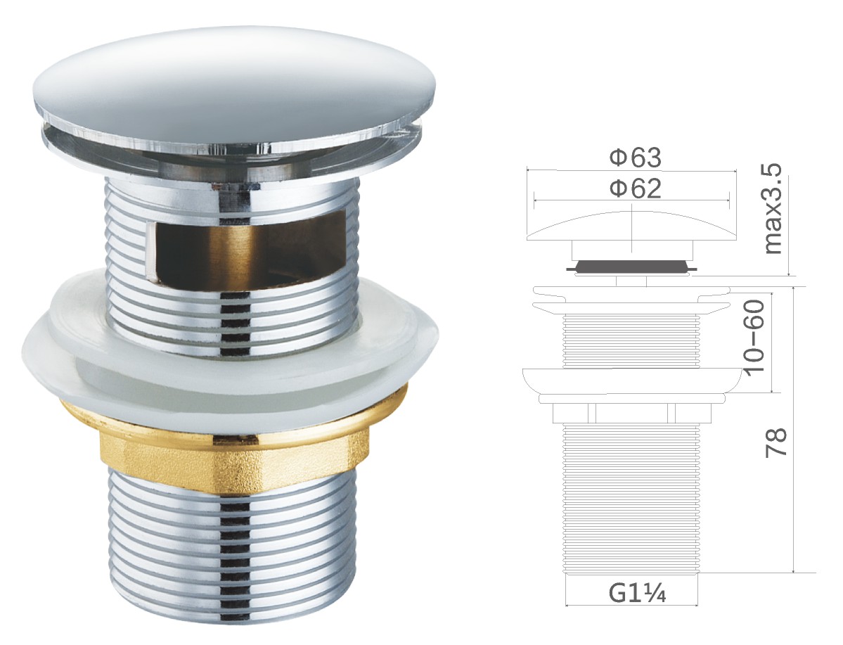Brass water for public wash basin 1 1/4" fixed cover not clic-clac