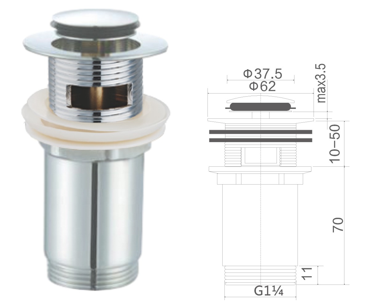 Stainless steel water for wash basin 1 1/4" clic-clac