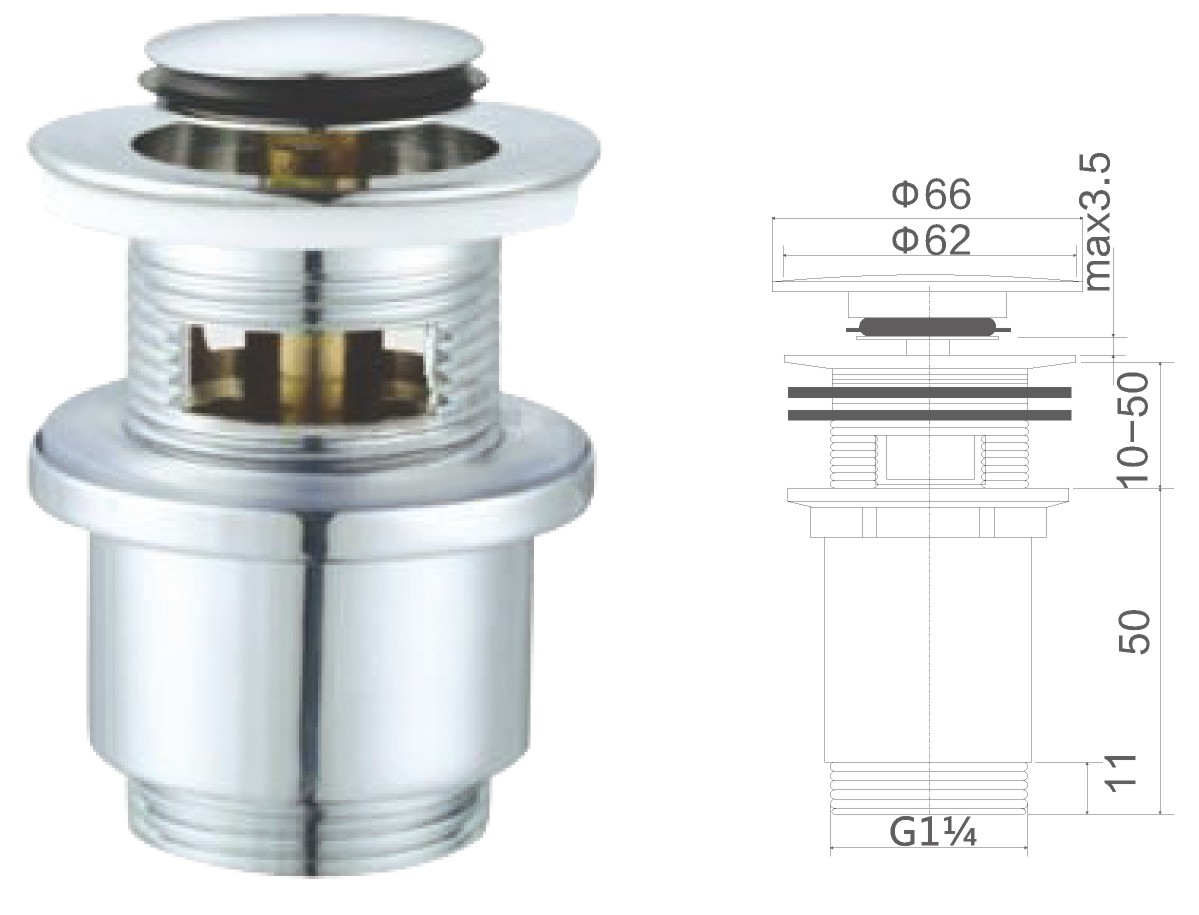 Brass waste for wash basin 1 1/4" clic-clac