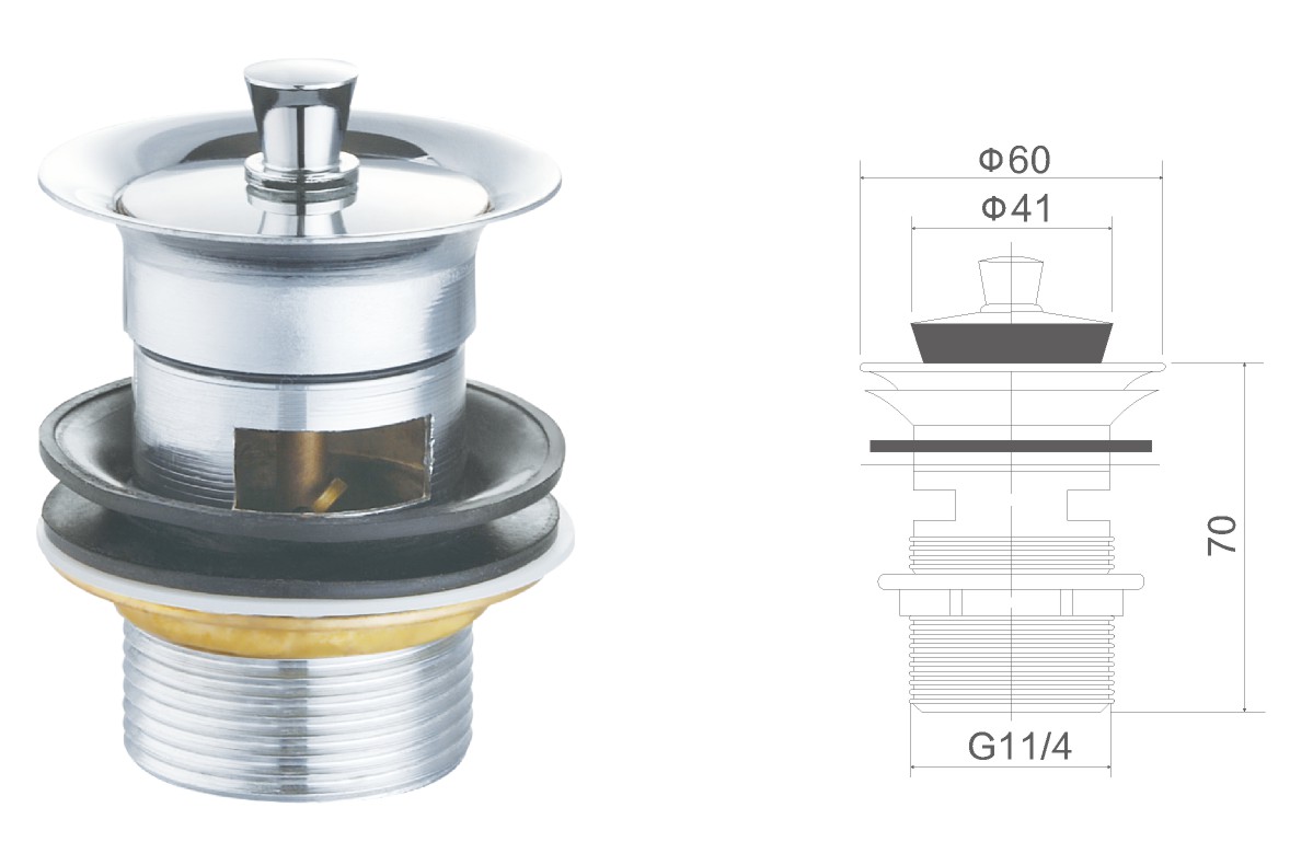 Stainless steel water for wash basin 1 1/4" clic-clac