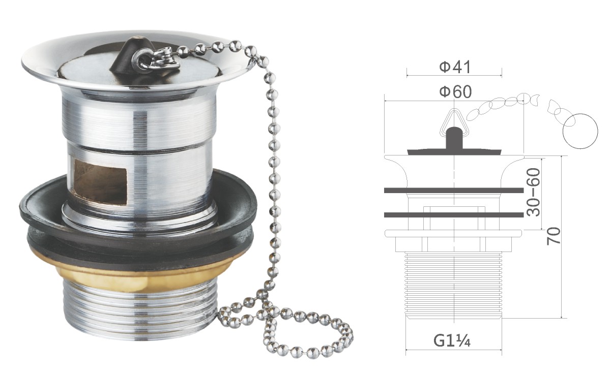 Stainless steel water for wash basin 1 1/4" clic-clac
