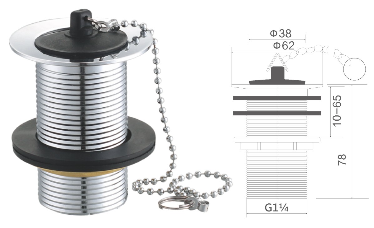 Stainless steel water for wash basin 1 1/4" clic-clac