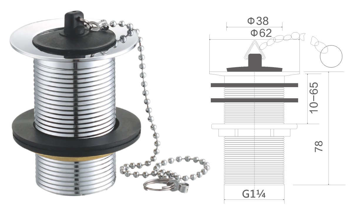 Stainless steel water for wash basin 1 1/4" clic-clac