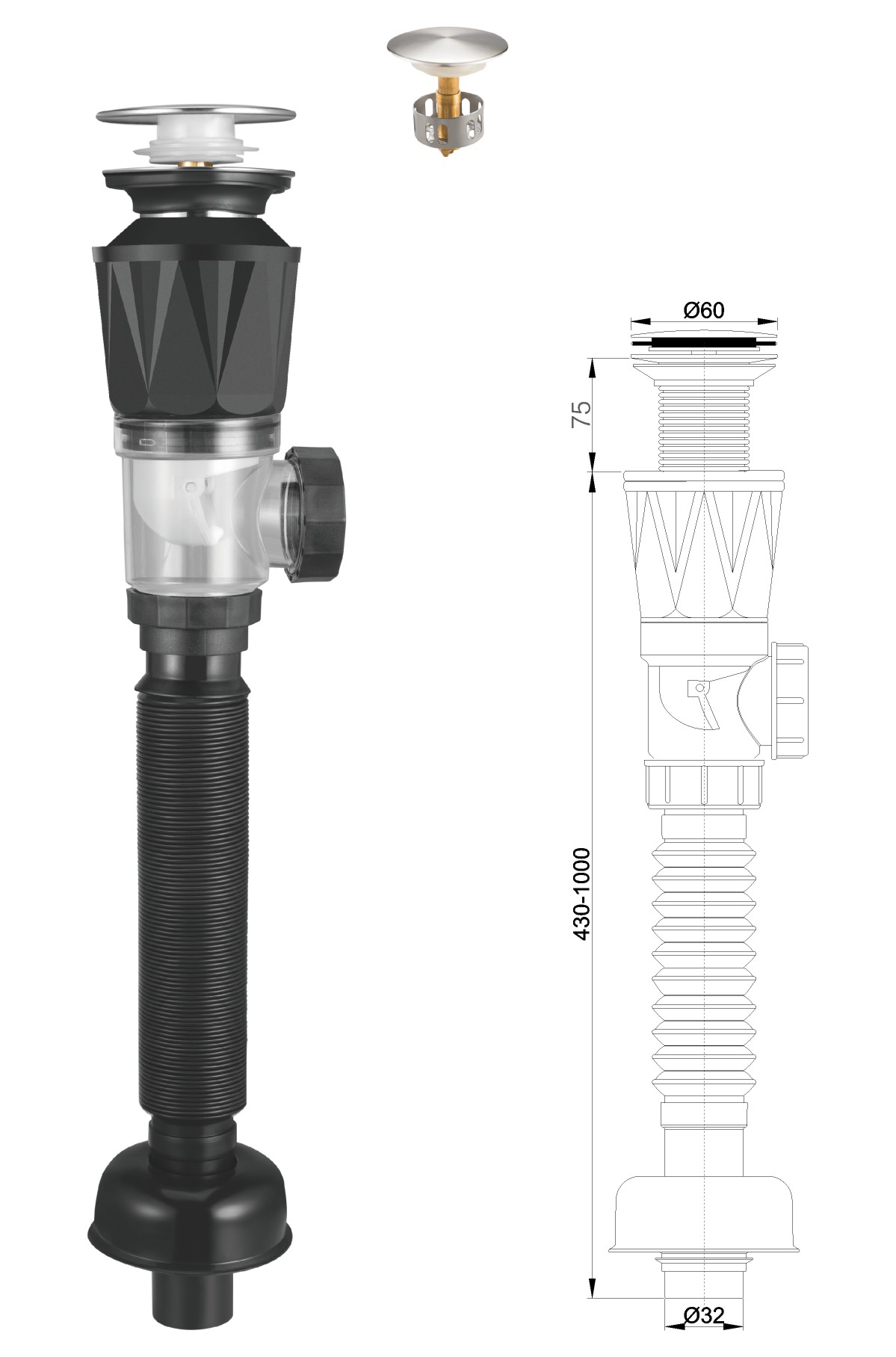 Stainless steel water for wash basin 1 1/4" clic-clac