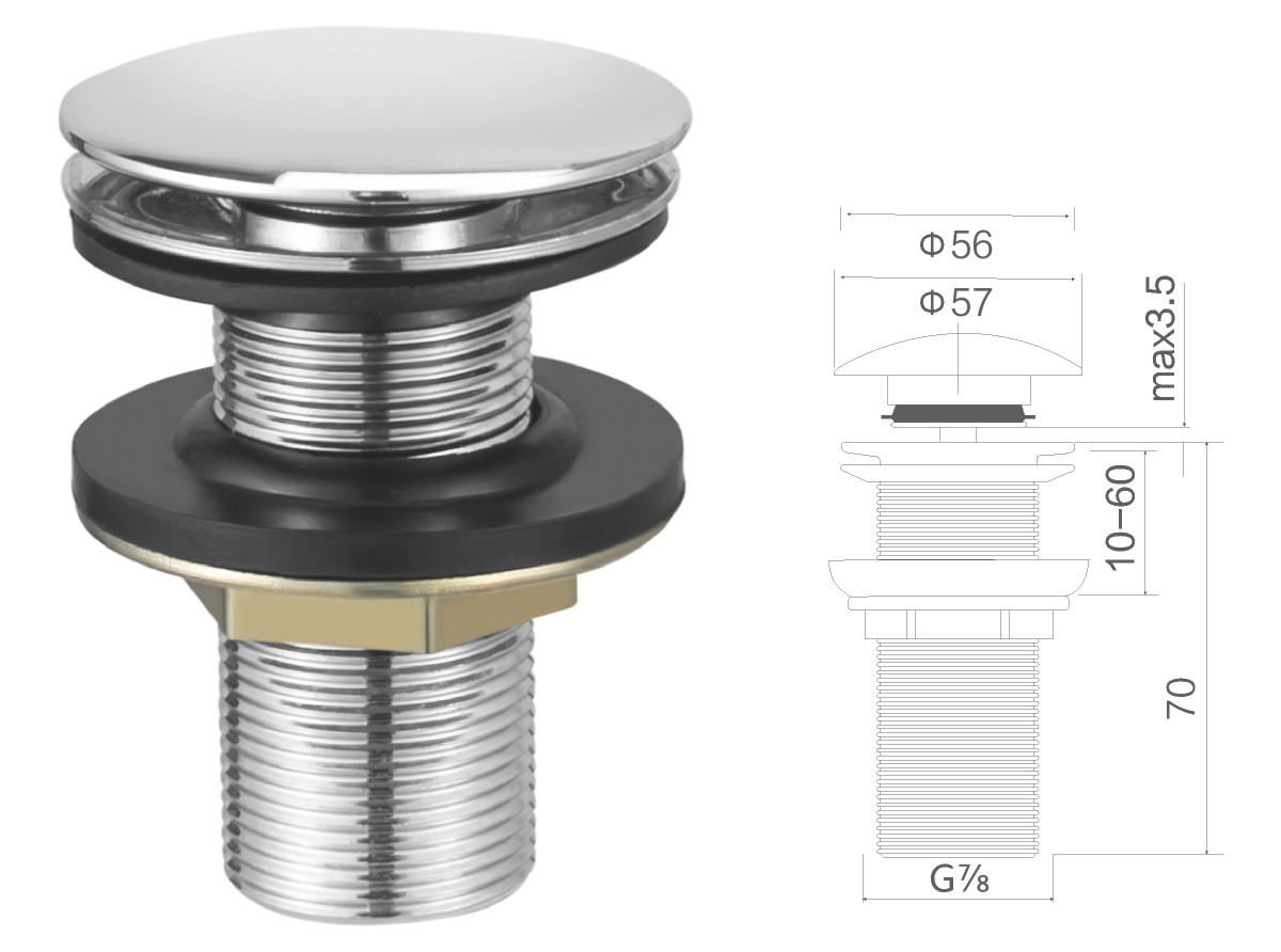 Stainless steel water for wash basin 1 1/4" clic-clac