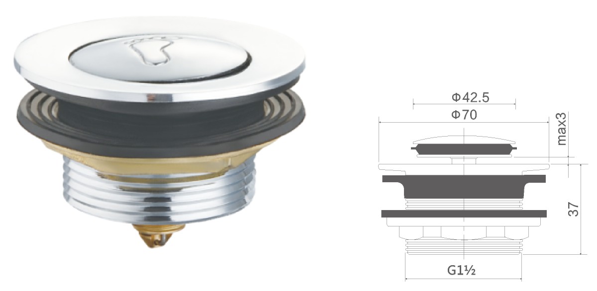 Brass water for bathtub 1 1/2",clic-clac