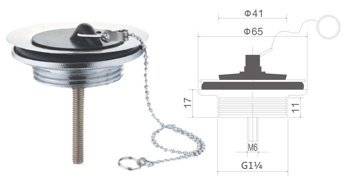 Stainless steel water for wash basin 1 1/4" clic-clac