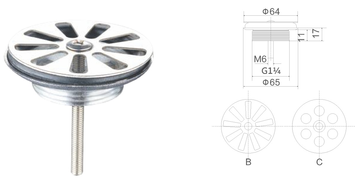 Stainless steel water for wash basin 1 1/4" clic-clac