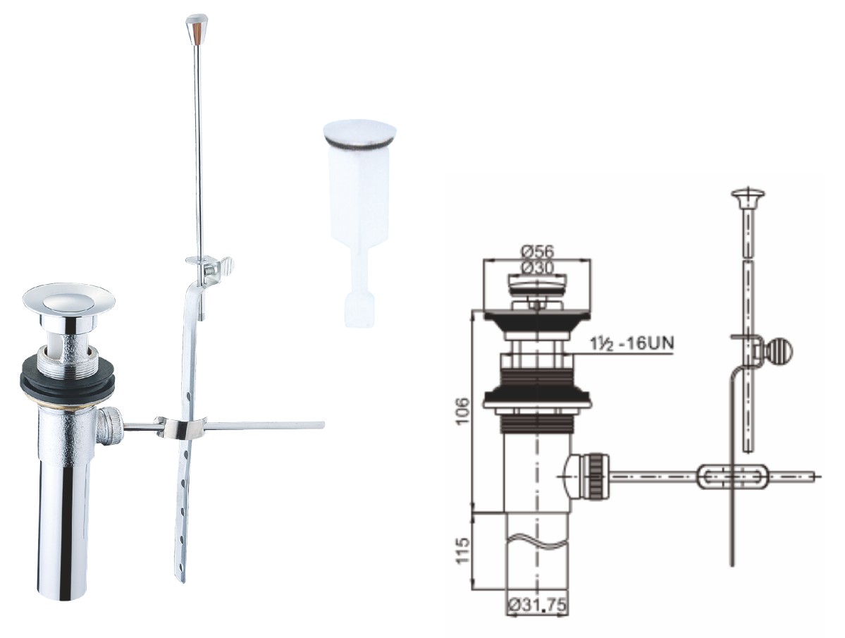 Stainless steel water for wash basin 1 1/4" clic-clac