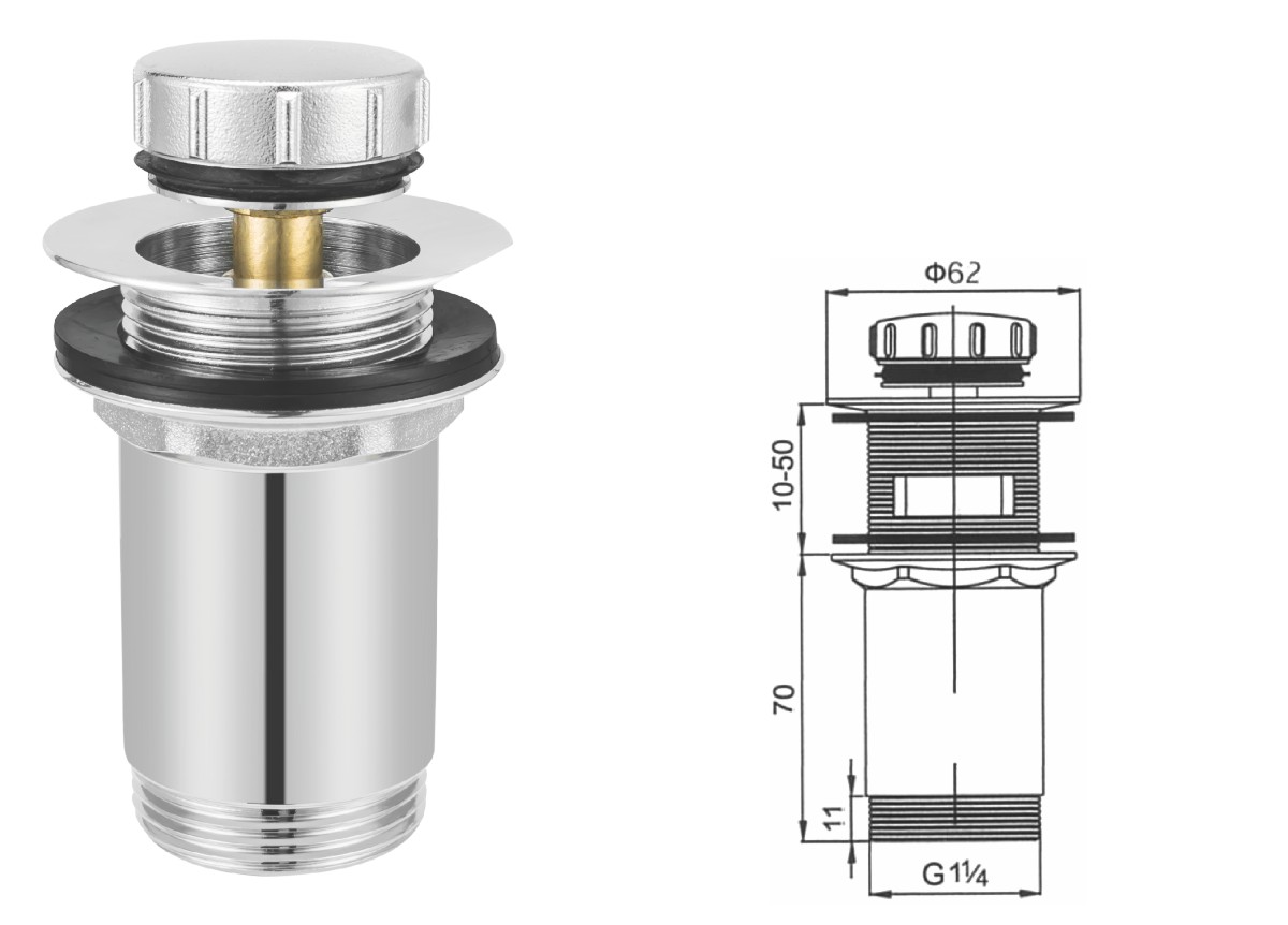 Stainless steel water for wash basin 1 1/4" clic-clac