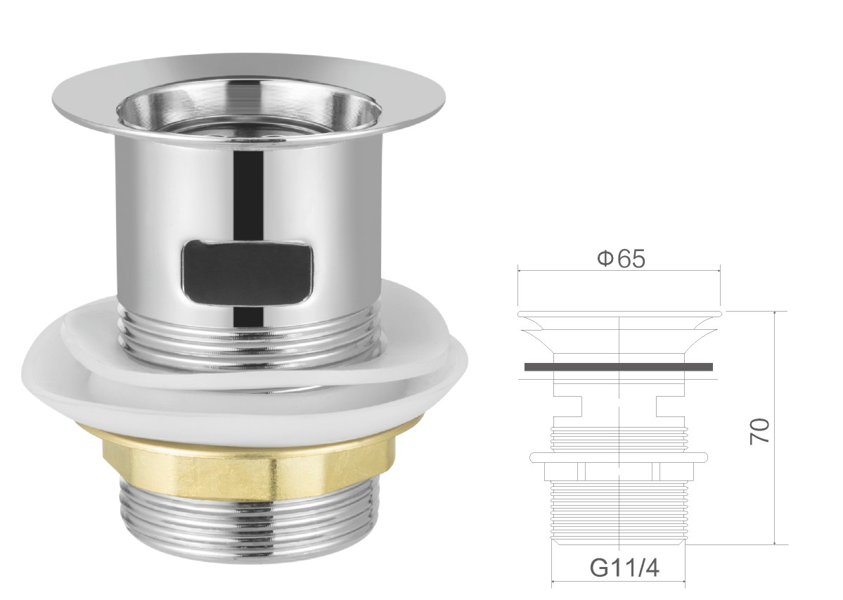 Brass water for public wash basin 1 1/4" fixed cover not clic-clac