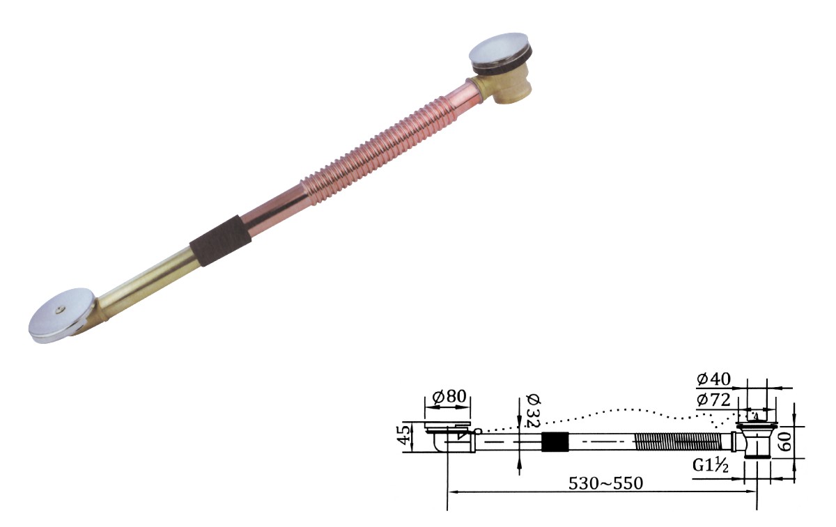 Stainless steel water for wash basin 1 1/4" clic-clac