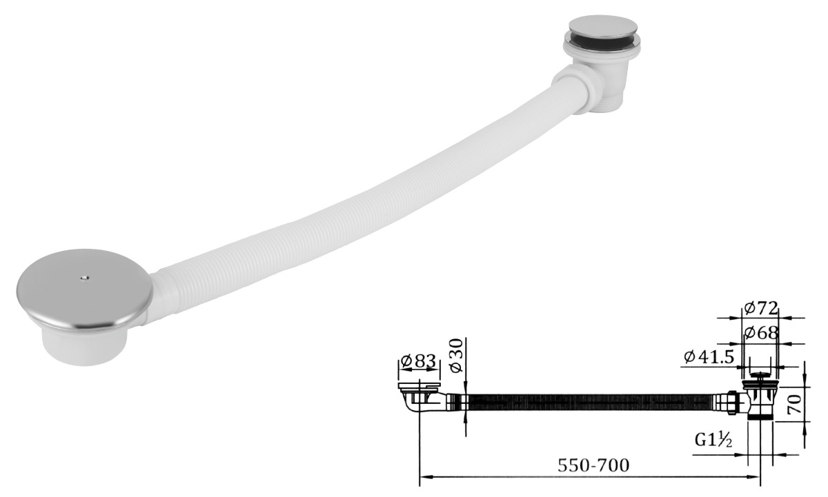 Stainless steel water for wash basin 1 1/4" clic-clac