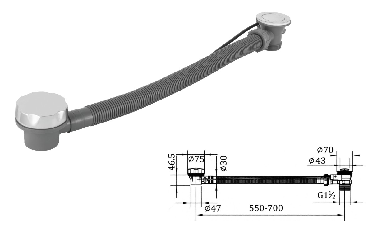 Stainless steel water for wash basin 1 1/4" clic-clac