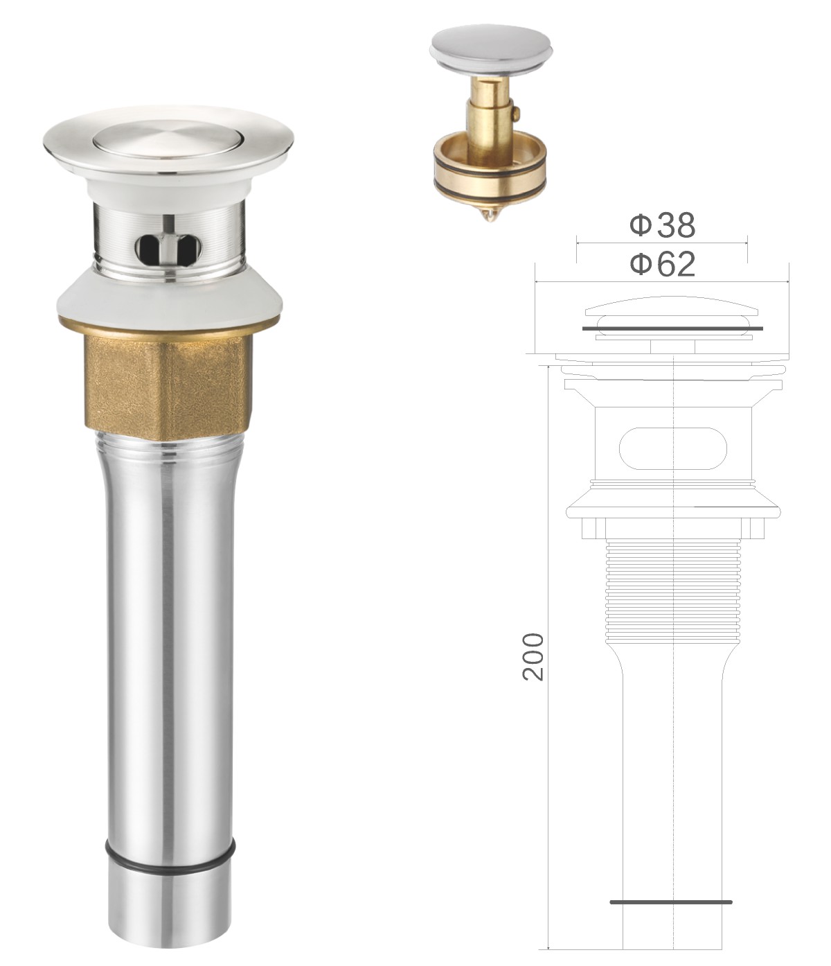 Brass waste for wash basin 1 1/4" clic-clac