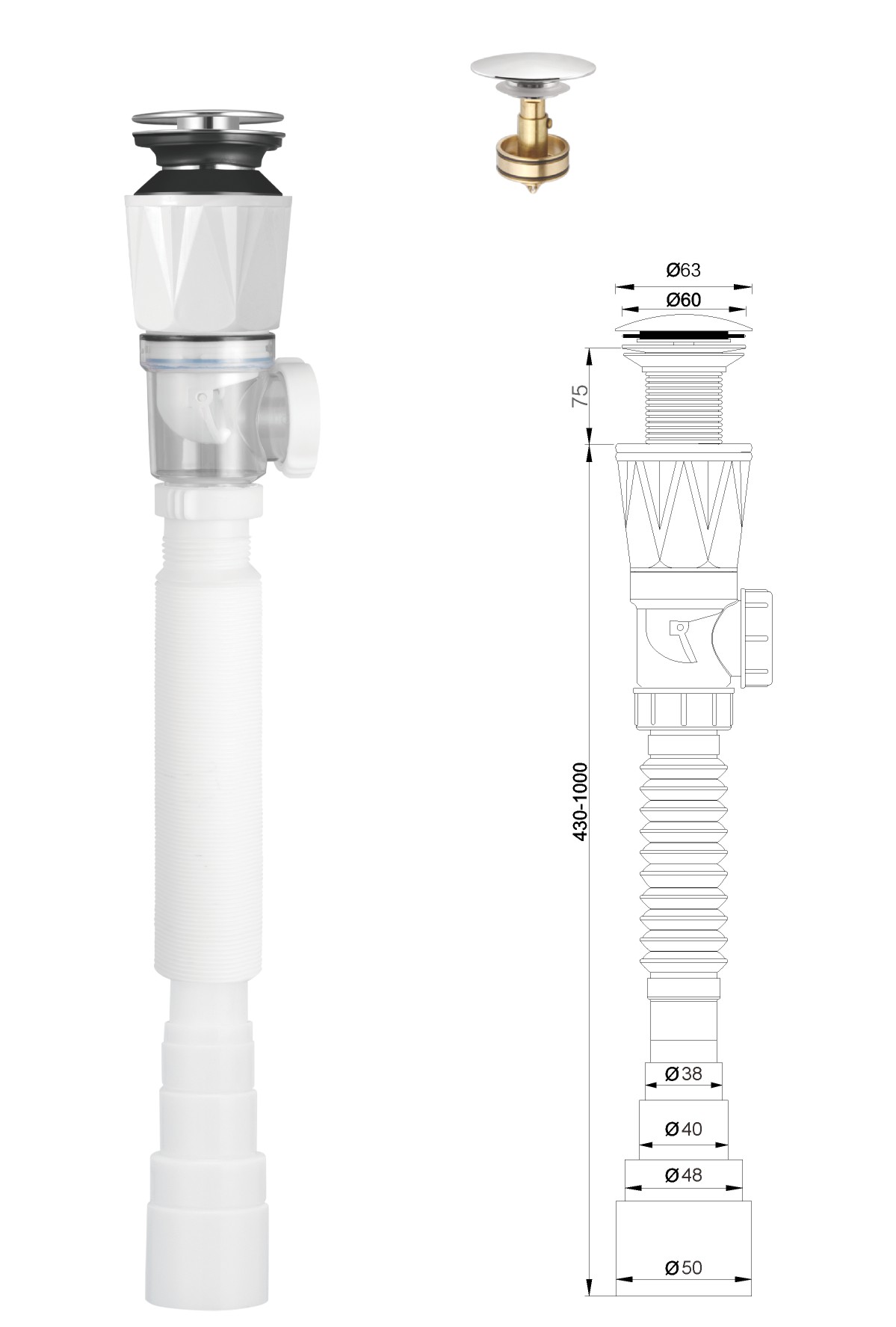 Stainless steel water for wash basin 1 1/4" clic-clac