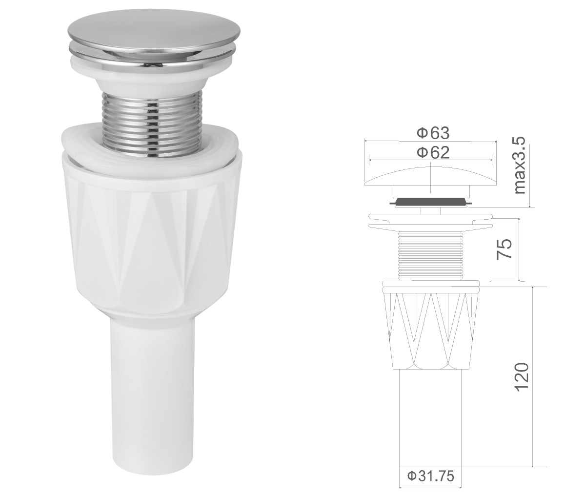 Brass waste for wash basin 1 1/4" clic-clac