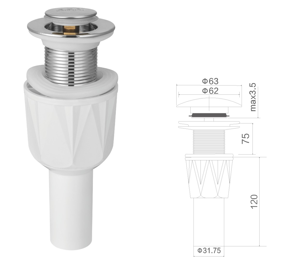 Stainless steel water for wash basin 1 1/4" clic-clac