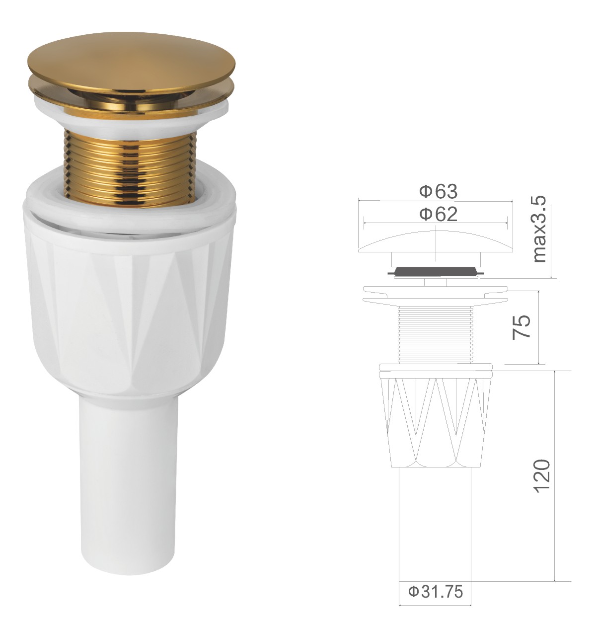 Brass water for public wash basin 1 1/4" fixed cover not clic-clac