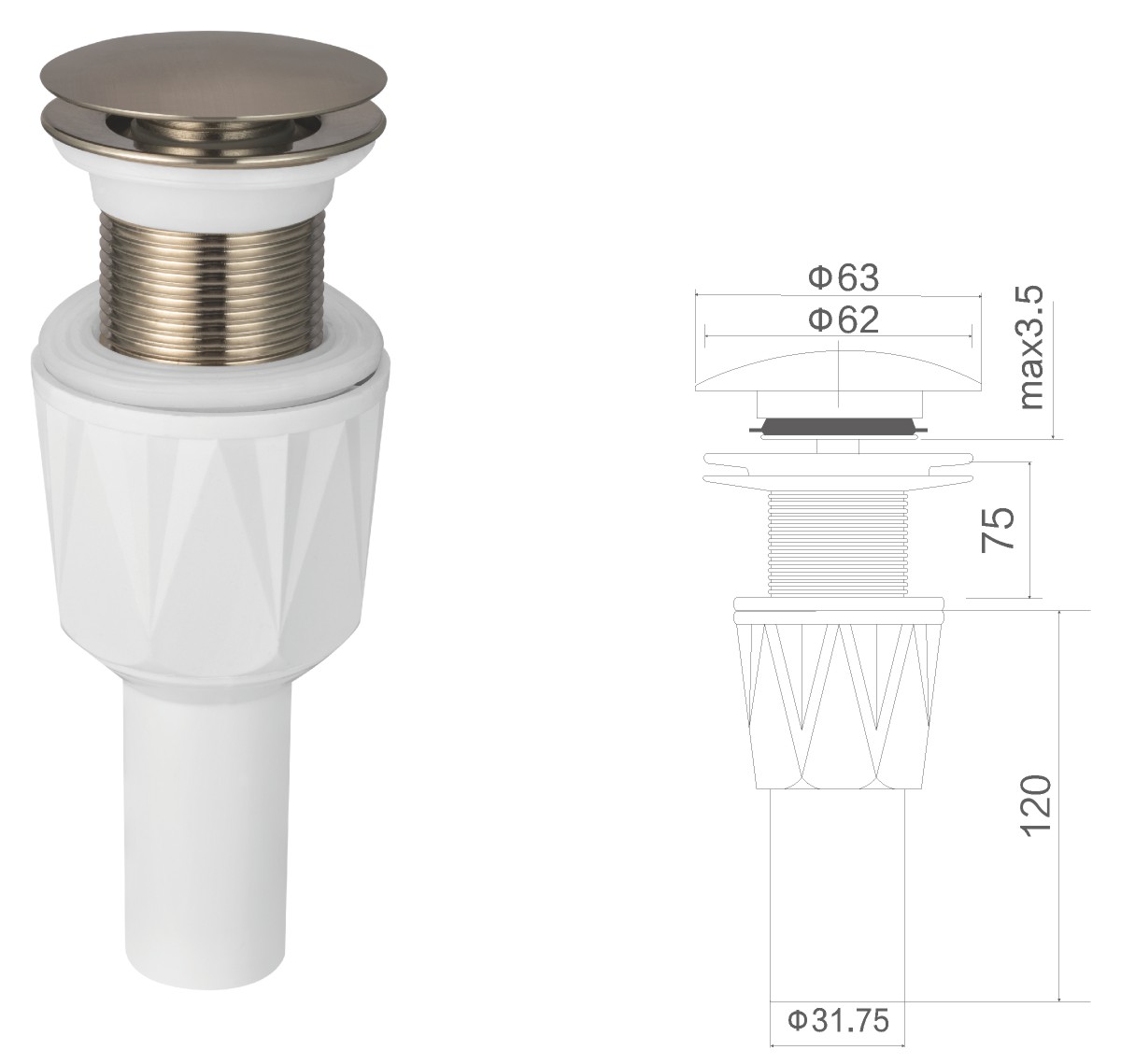 Stainless steel water for wash basin 1 1/4" clic-clac