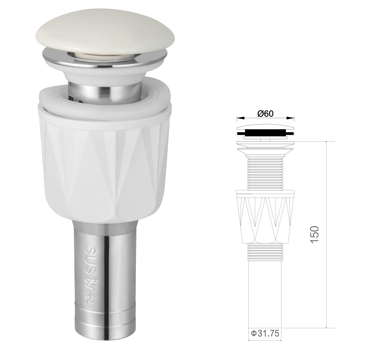 Stainless steel water for wash basin 1 1/4" clic-clac