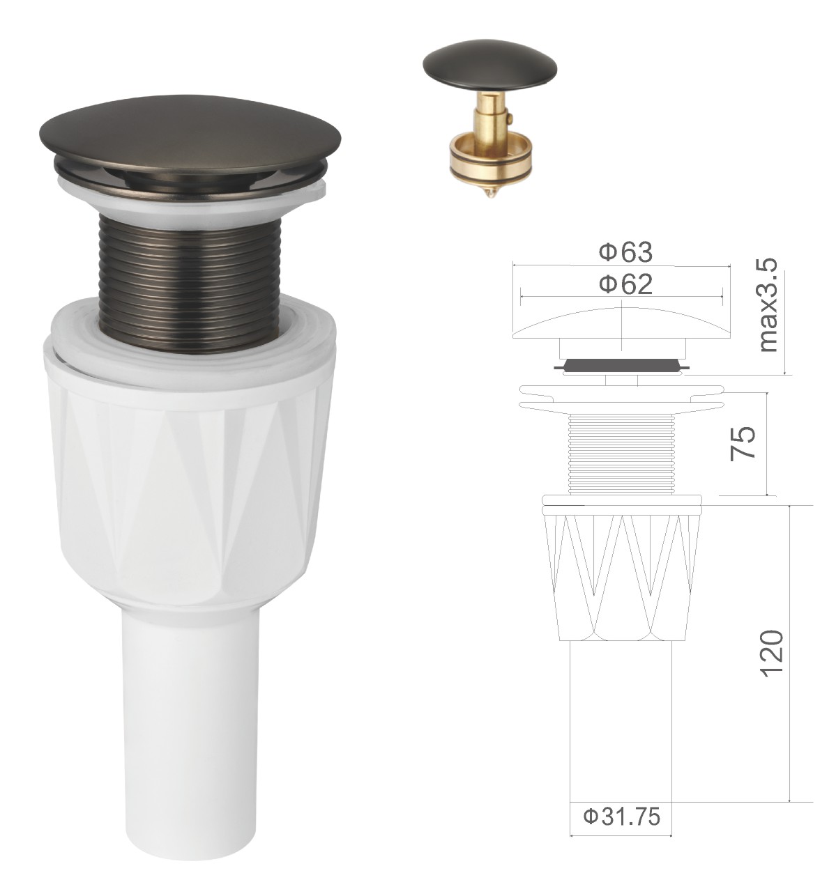 Brass waste for wash basin 1 1/4" clic-clac