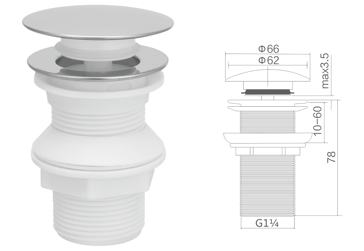 Stainless steel water for wash basin 1 1/4" clic-clac