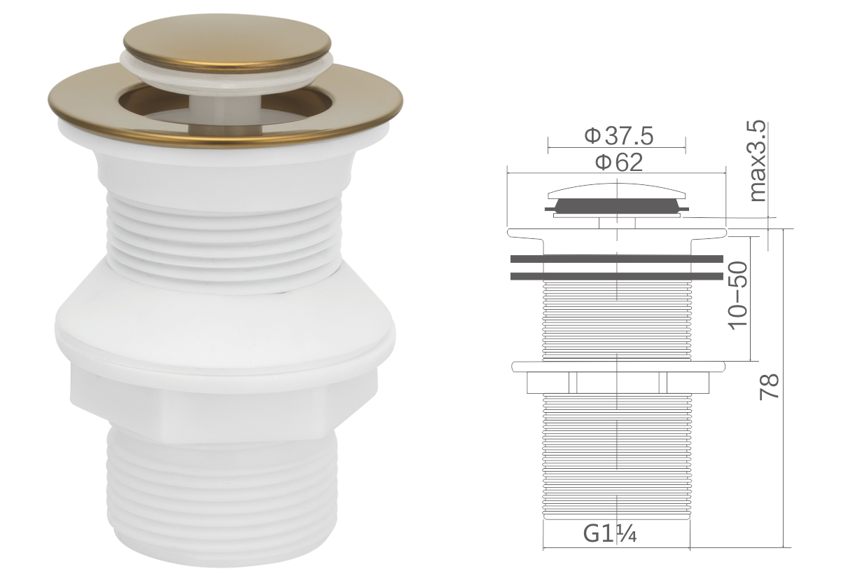 Brass water for public wash basin 1 1/4" fixed cover not clic-clac