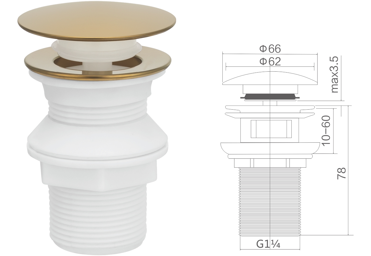 Stainless steel water for wash basin 1 1/4" clic-clac
