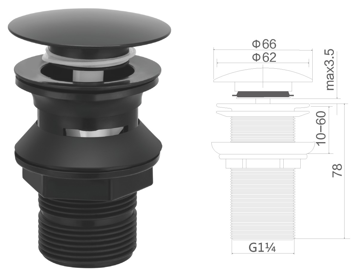 Brass waste for wash basin 1 1/4" clic-clac
