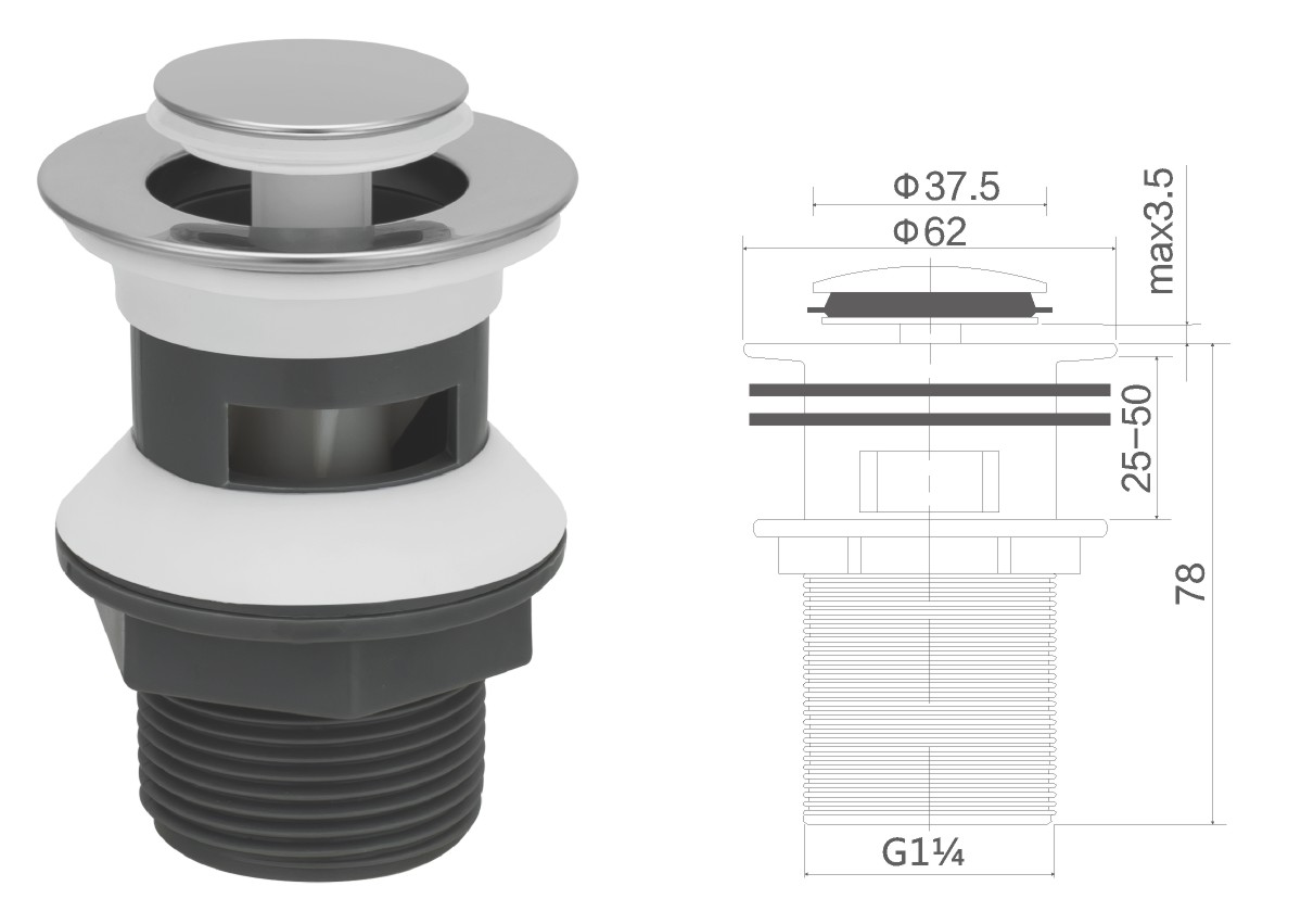 Stainless steel water for wash basin 1 1/4" clic-clac