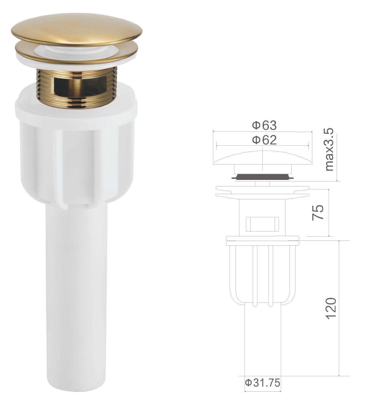 Brass water for public wash basin 1 1/4" fixed cover not clic-clac